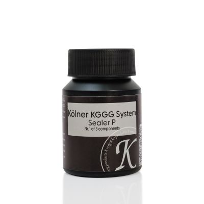 Il sistema KGGG non utilizza la solita rete ad alcool, ma una soluzione debole di colla di cuoio in acqua. La compressa di Colnasol viene sciolta in acqua calda. Dopo il raffreddamento, le reti possono essere applicate. Una compressa è sufficiente per mezzo litro d’acqua. È possibile utilizzare anche parti della tavoletta. Dopo l’applicazione della foglia d’oro, attendere 24 ore prima di lucidare l’agata.