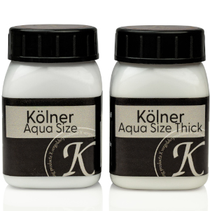 Die Kölner Aqua Size ist für einfache Schlagmetall-Vergoldungen im Innenbereich zu verwenden. Die Verarbeitungszeit liegt zwischen 15 Minuten und 60 Stunden. Da sie sich nie so dünn auftragen lässt, wie Ölmixtion, ist sie für Blattgold nur bedingt geeignet. Lieferbare Gebinde: